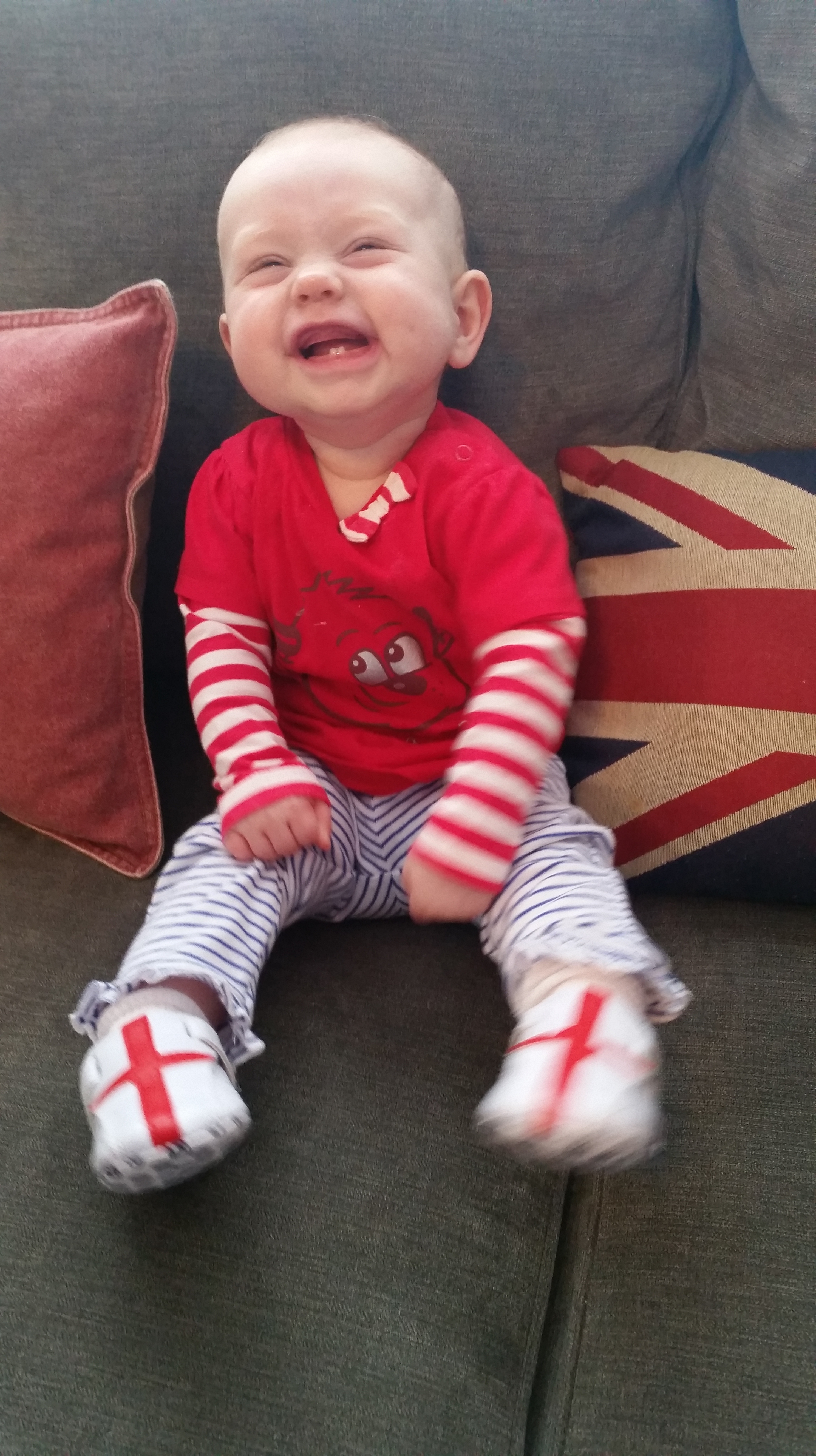 A busy babe, you haven’t stopped moving since you could kick your legs, roll over, sit up and reach for things. You are still the fastest crawler (from your early commando crawl to a kind of slide, now standing on one knee in typical Lily stance!). You are constantly on the go! But save for a few shaky steps recently, you aren’t ready to walk just yet. Take your time, sweetie. Enjoy being little and don’t rush this growing up thing!